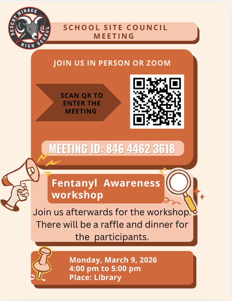 Join us for the School Site Council Meeting on Monday, March 9, 2026 at 4:00 pm in the Library.